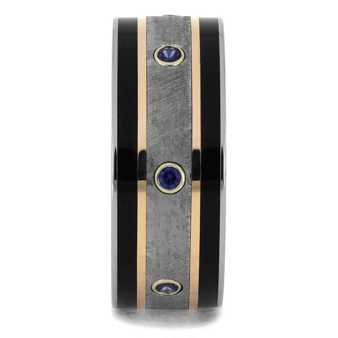 Materials in Meteorite & Ebony Wood Ring With Sapphires