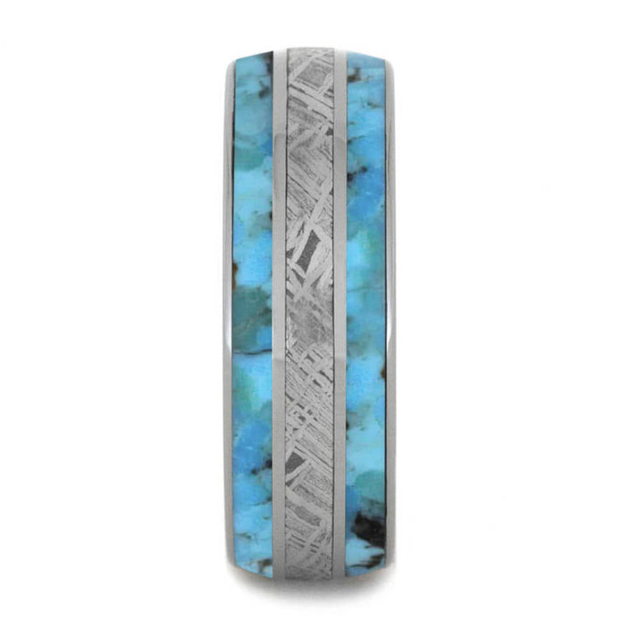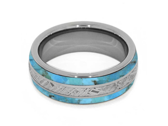 Meteorite Ring With Authentic Turquoise And Titanium Pinstripes