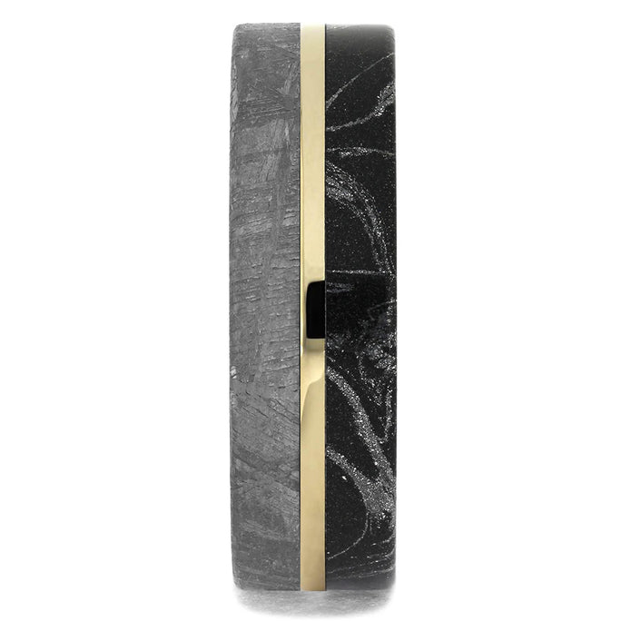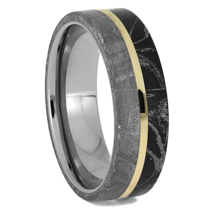Materials in Meteorite & Mokume Gane Wedding Band With Gold Pinstripe