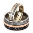 Meteorite Wedding Band Set with Rose Gold Pinstripes and Stardust