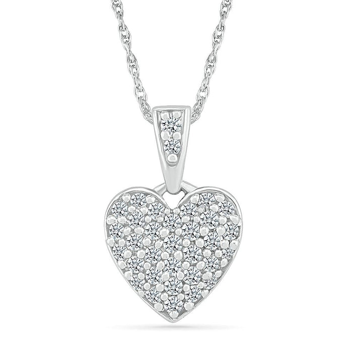 Show your love with this dainty diamond heart pendant necklace! An 18 inch rope chain comes with this diamond heart pendant. Get this diamond necklace in sterling silver or white gold.