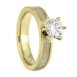 This moissanite 14k yellow gold solitaire engagement ring departs from typical designs by featuring aspen wood in the band. A 6 mm moissanite center stone glistens in its gold setting, which matches stylishly with the aspen wood in the band’s inlay. Show your love for your significant other and nature all at once with this wood jewelry!