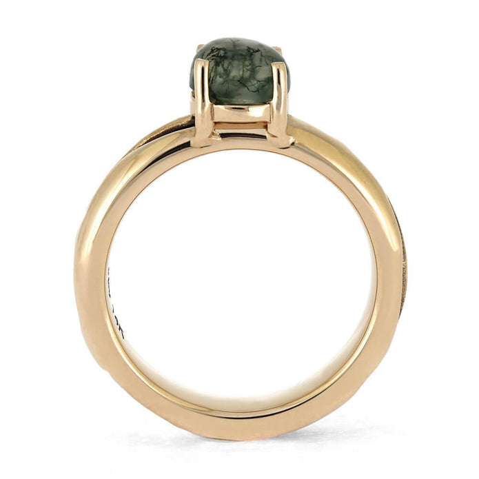 Moss Agate Solitaire with Gibeon Meteorite in Rose Gold