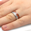 This meteorite ring features a cedar wood inlay alongside the jagged meteorite.