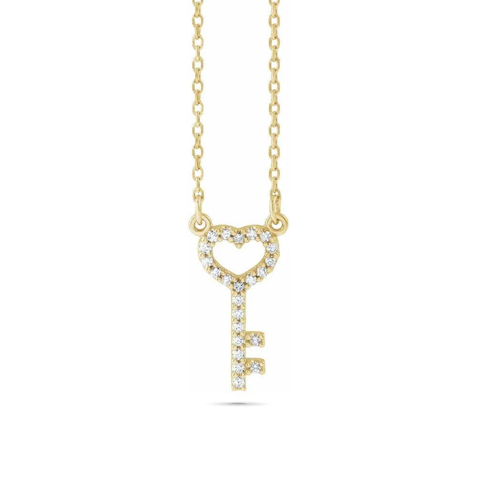 This dainty, cute necklace is perfect for that special someone who has the key to your heart. Accented with natural diamonds, it sparkles from top to bottom. The top of the key is shaped like a heart making it a perfect symbol of love.