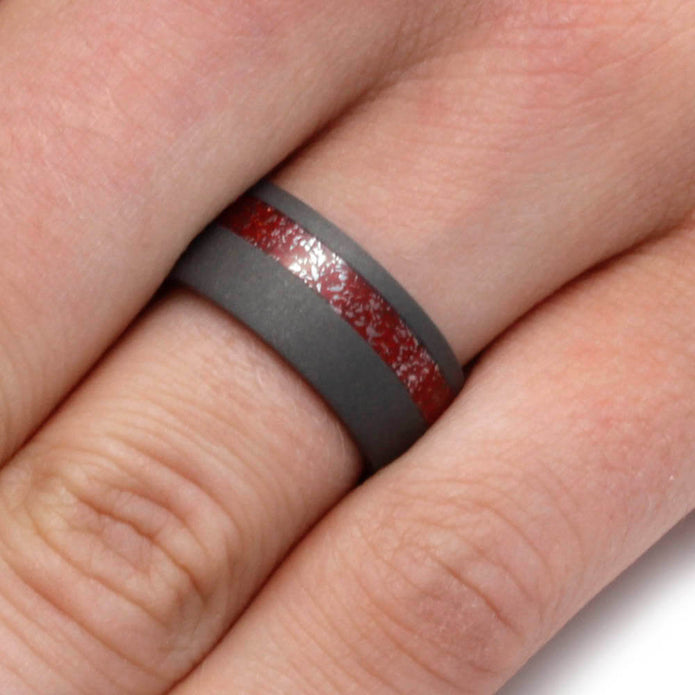 Red Stardust™ Men's Wedding Band In Sandblasted Titanium
