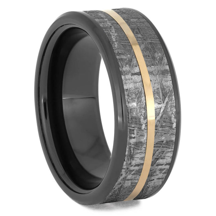 Materials in Meteorite Men's Wedding Band With Gold Pinstripe
