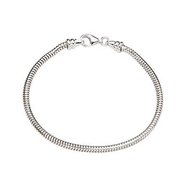 This sterling silver snake bracelet can carry your beads and charms where ever you go. Customize the snake-bracelet with our in stock beads or custom make your very own today. One end of the bracelet can be screwed out when you are putting in your beads.