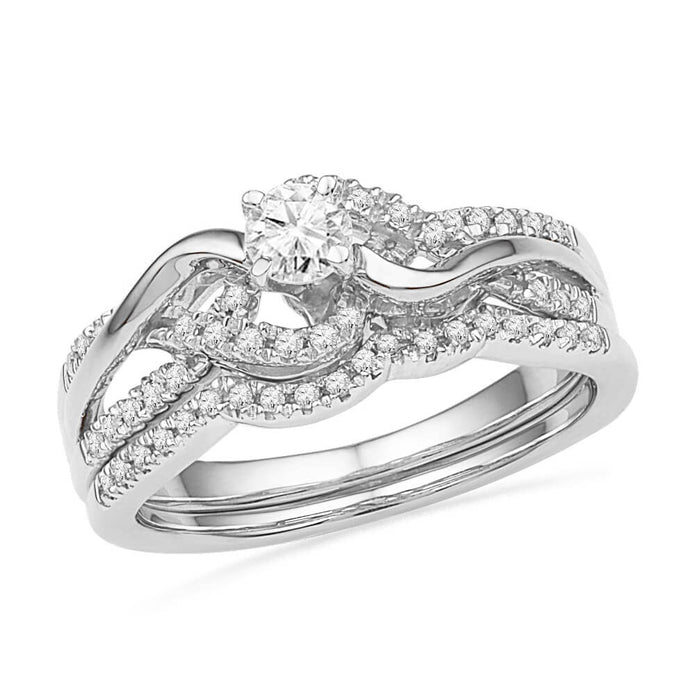 Present her with this swirl diamond engagement ring set as a token of your unwavering love. This style of wedding ring set is an effortless way to achieve a unique look she is sure to love. A matching diamond wedding band fits seamlessly under the engagement ring for a romantic look and feel.