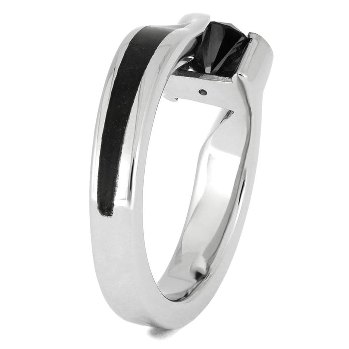 Tension Set Black Diamond Engagement Ring with Labradorite