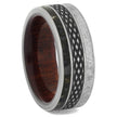 Materials in Men's Wedding Band With Meteorite, Wood & Celtic Engraving