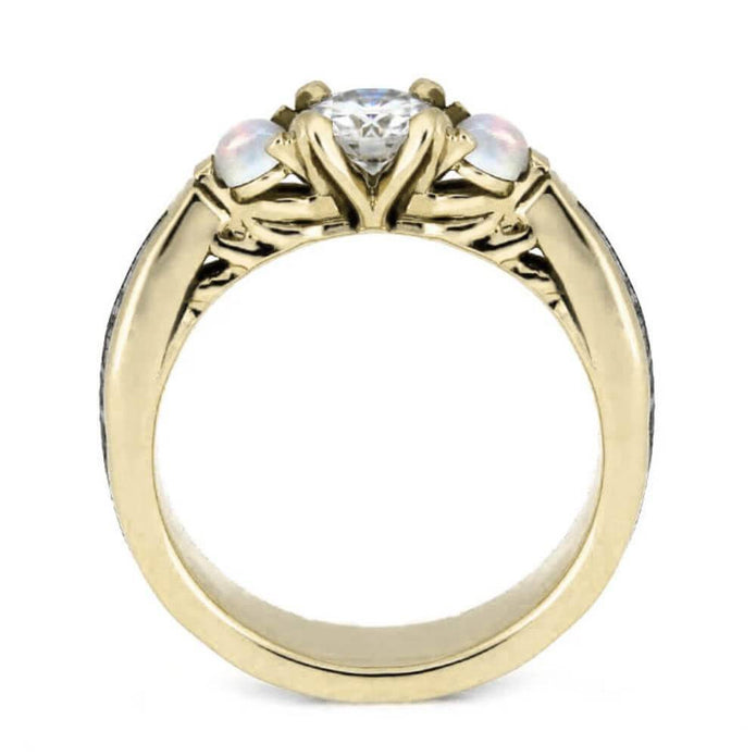 Materials in White Gold, Moonstone & Meteorite Engagement Ring