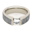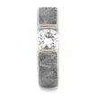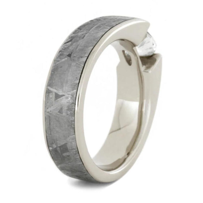 Tension Set White Sapphire Ring with Meteorite in White Gold