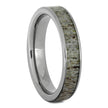 The perfect ring for someone who loves the outdoors or hunting, this women's wedding band features deer antler. The polished titanium edges frame and contrast the rugged pattern of the waterproofed deer antler inlay.