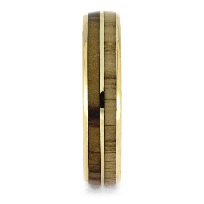 Double Inlay Wood Wedding Band in 14k Yellow Gold