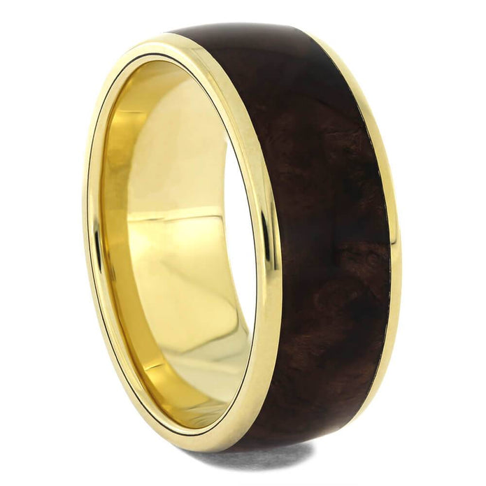 Yellow Gold Wedding Band with Black Ash Burl Wood