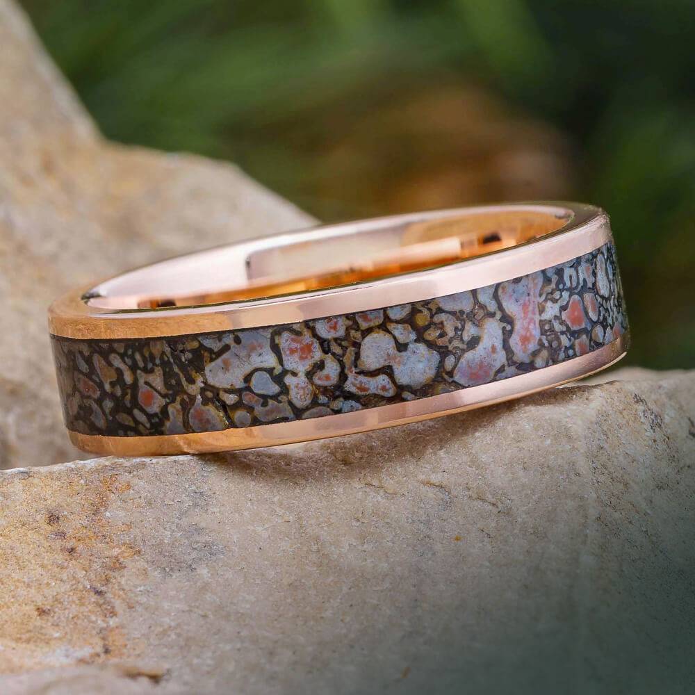 Dinosaur Bone Men's Ring with Tension Set Stone