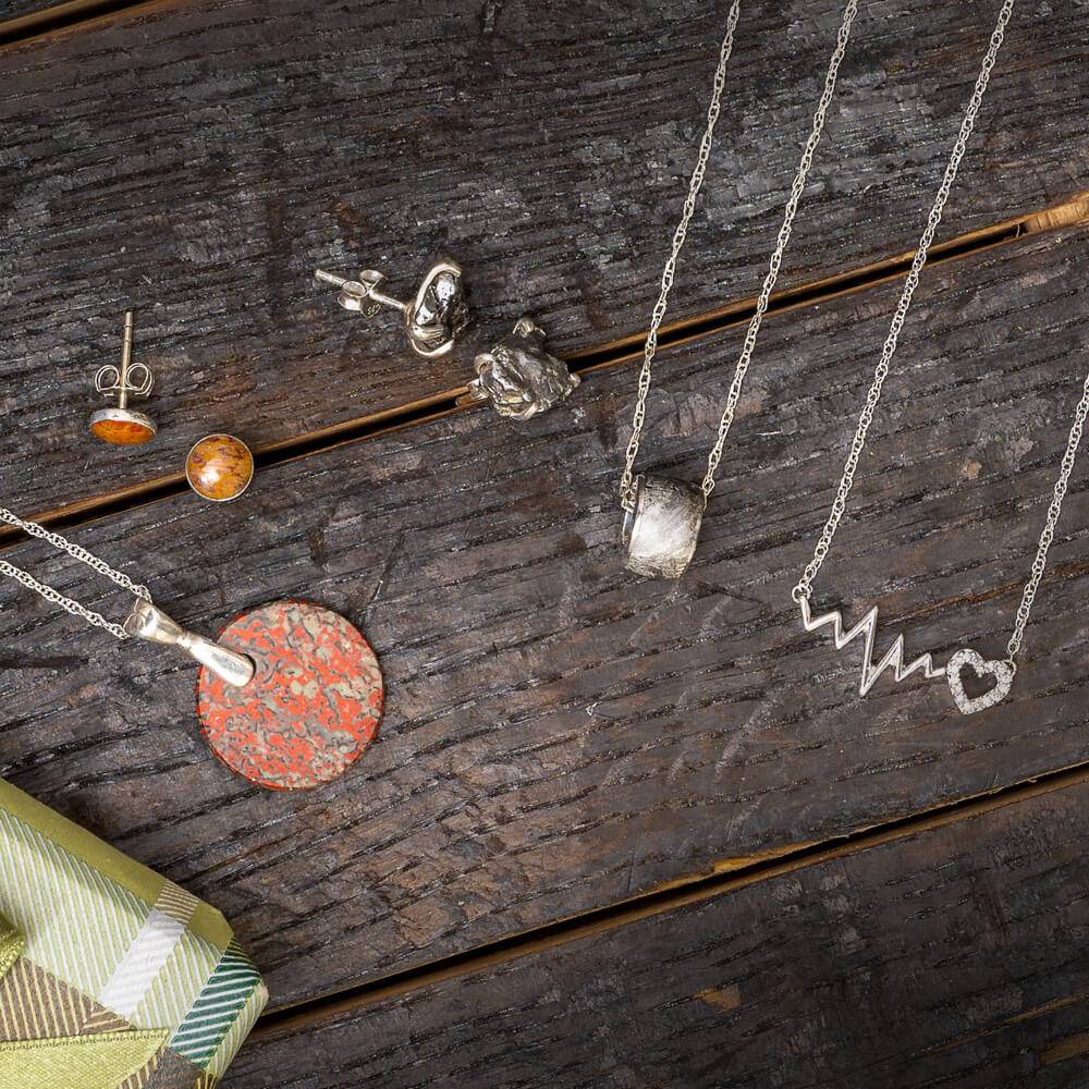Want something unique? We specialize in custom designs using meteorite, dinosaur bone, antler, and wood. Contact us to start your project.