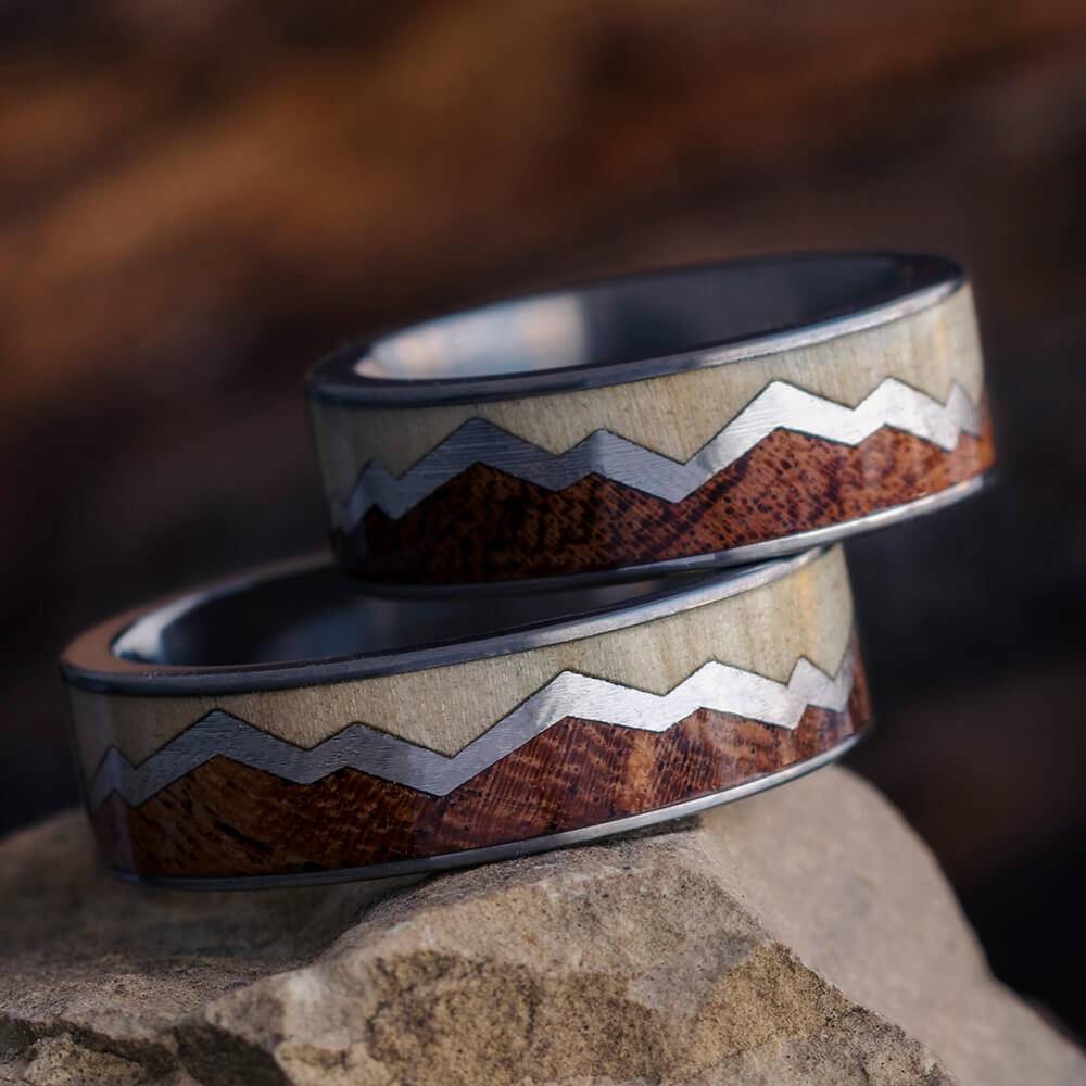 Ironwood and Antler Wedding Band