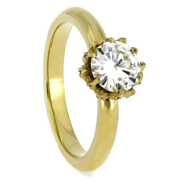 Moissanite Lotus Engagement Ring in Polished Gold Band