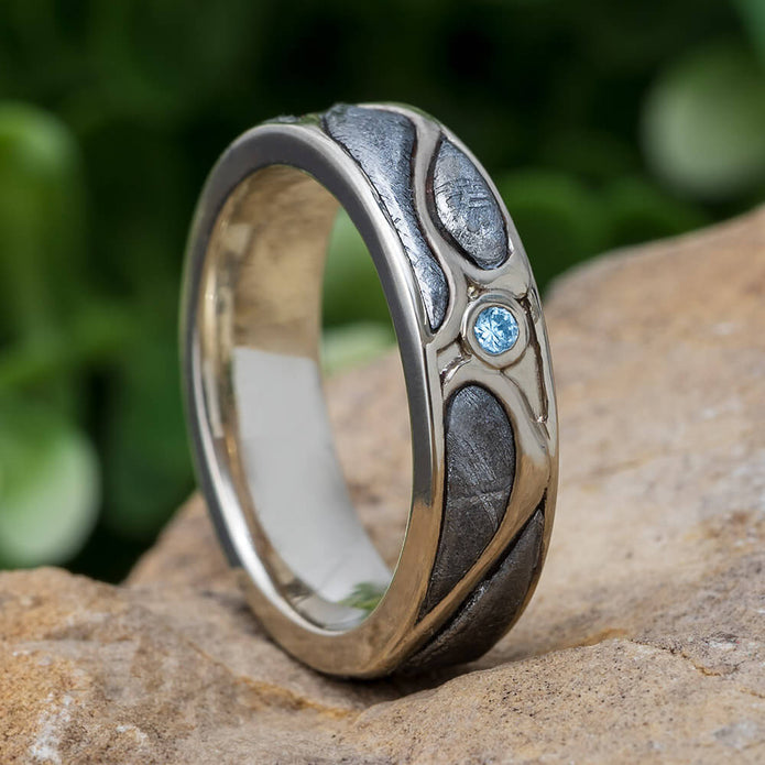 Meteorite Ring in Art Nouveau Design with Bezel Set Aquamarine