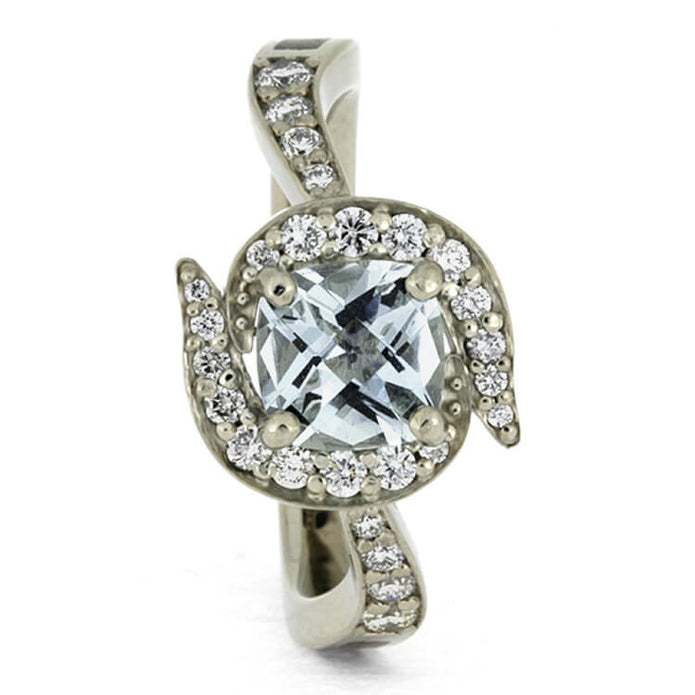 Aquamarine Halo Engagement Ring with Antler Inlay