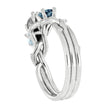 Wear one of the most unique rings there could ever be. This meteorite engagement ring is marvelous and comes in a three stone setting. The center stone is a meteorite stone with round cut aquamarines on each side. This sterling silver ring is designed with a three strand branch-like band that is twisted on the top and comes together towards the end.