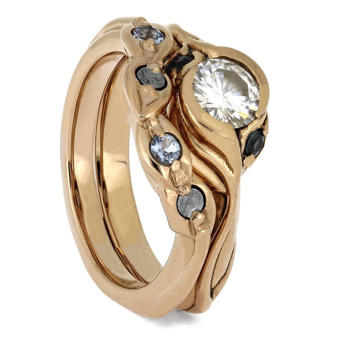 Materials in Unique Nature Inspired Bridal Set, Bezel Set Engagement Ring
