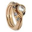 Unique Nature Inspired Bridal Set, Bezel Set Engagement Ring