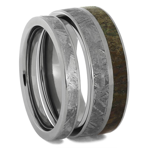 Embody the eternal bond of your relationship with our unique dinosaur bone wedding ring sets. Each ring is a masterpiece, showcasing extraordinary craftsmanship and style that is as unique as your love story. These meticulously handcrafted pieces are expertly designed to provide a harmonious blend of ancient rarity and contemporary elegance, making them a perfect symbol of your enduring union.
