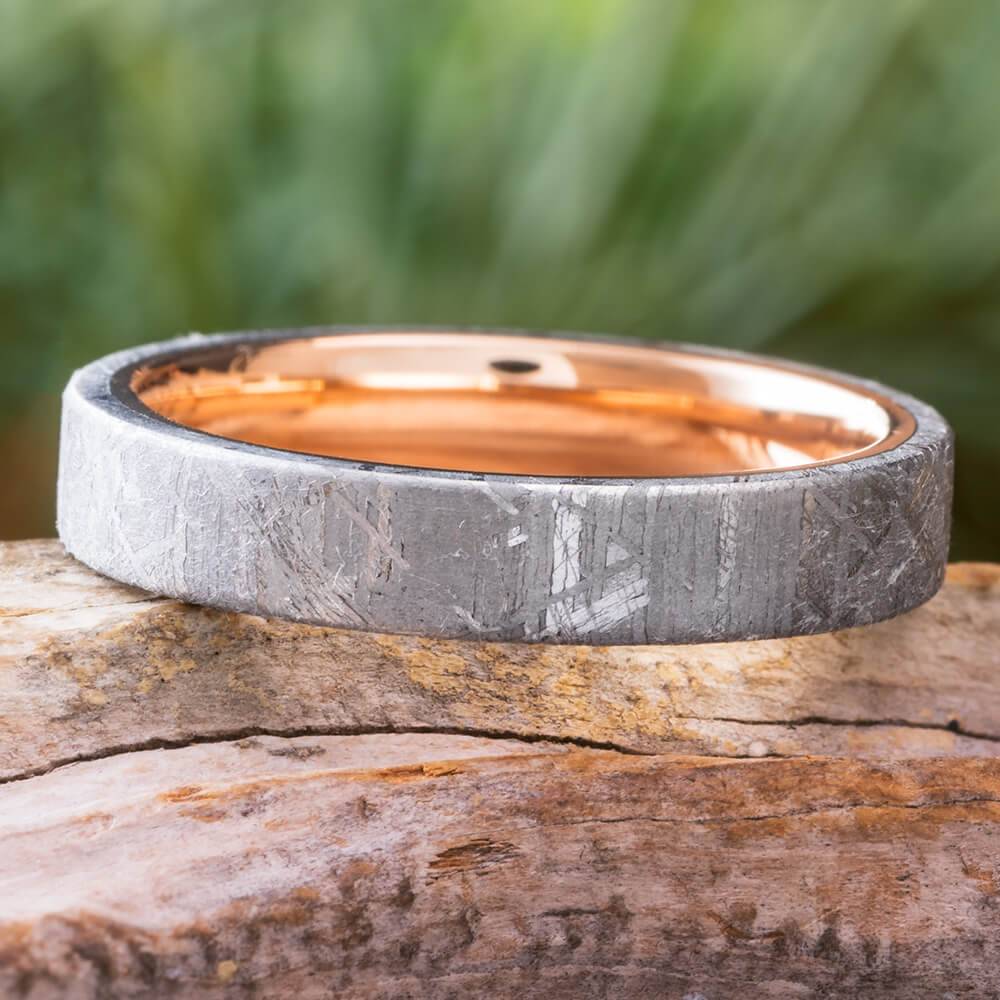 Materials in 4mm Gibeon Meteorite Wedding Band With Rose Gold