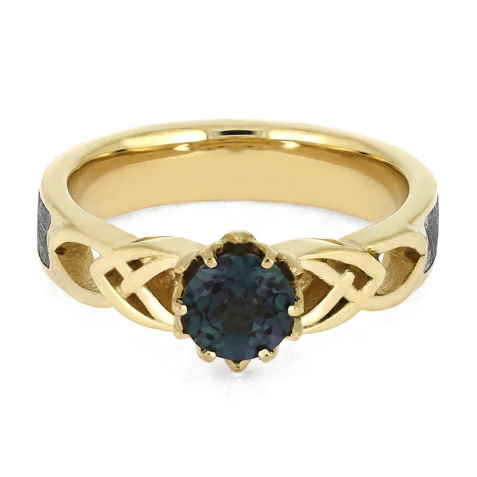 Alexandrite Engagement Ring With Meteorite and Celtic Knot Design