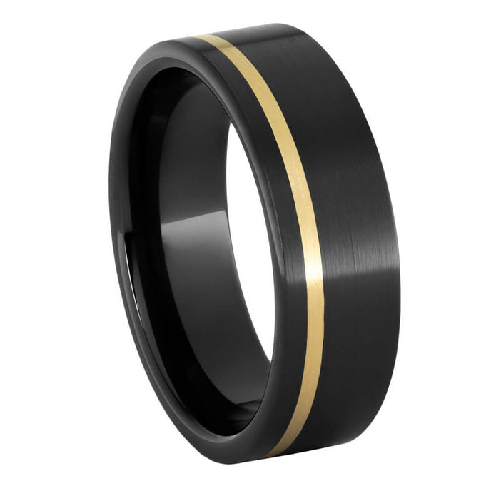Materials in Black Ceramic Band with Yellow Gold Pinstripe