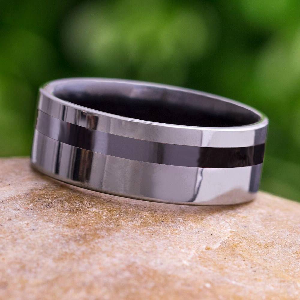 Black Ceramic & Titanium Men's Wedding Band