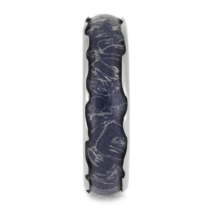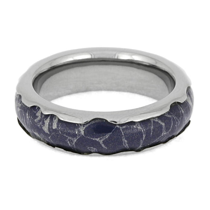 Materials in Blue Mokume Gane Ring, Titanium Wedding Band With Wavy Edges