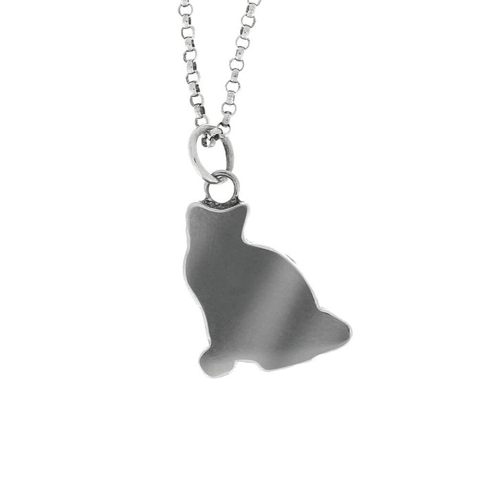 This cat pendant is a way to remember your pet. This pet memorial pendant features ashes inside of a cat-shaped frame. Bring in the ashes of your beloved pet and we will carefully inlay it into your very own personalized sterling silver pendant.