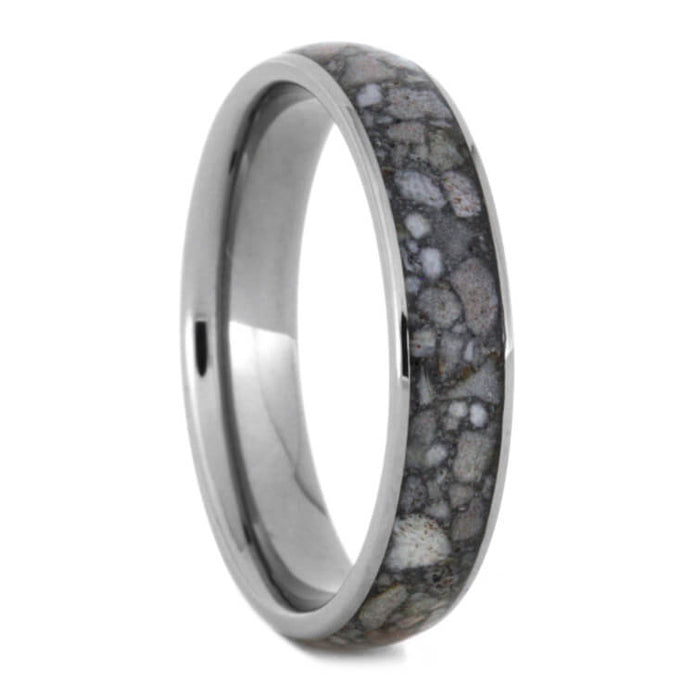 Materials in Crushed Deer Antler Wedding Band In Titanium