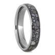 Crushed deer antler is inlaid in this titanium wedding band. This is a new ring design now included in with my deer antler ring collection. With the unique patterns and colors bursting from this ring, it can't go wrong in any way.