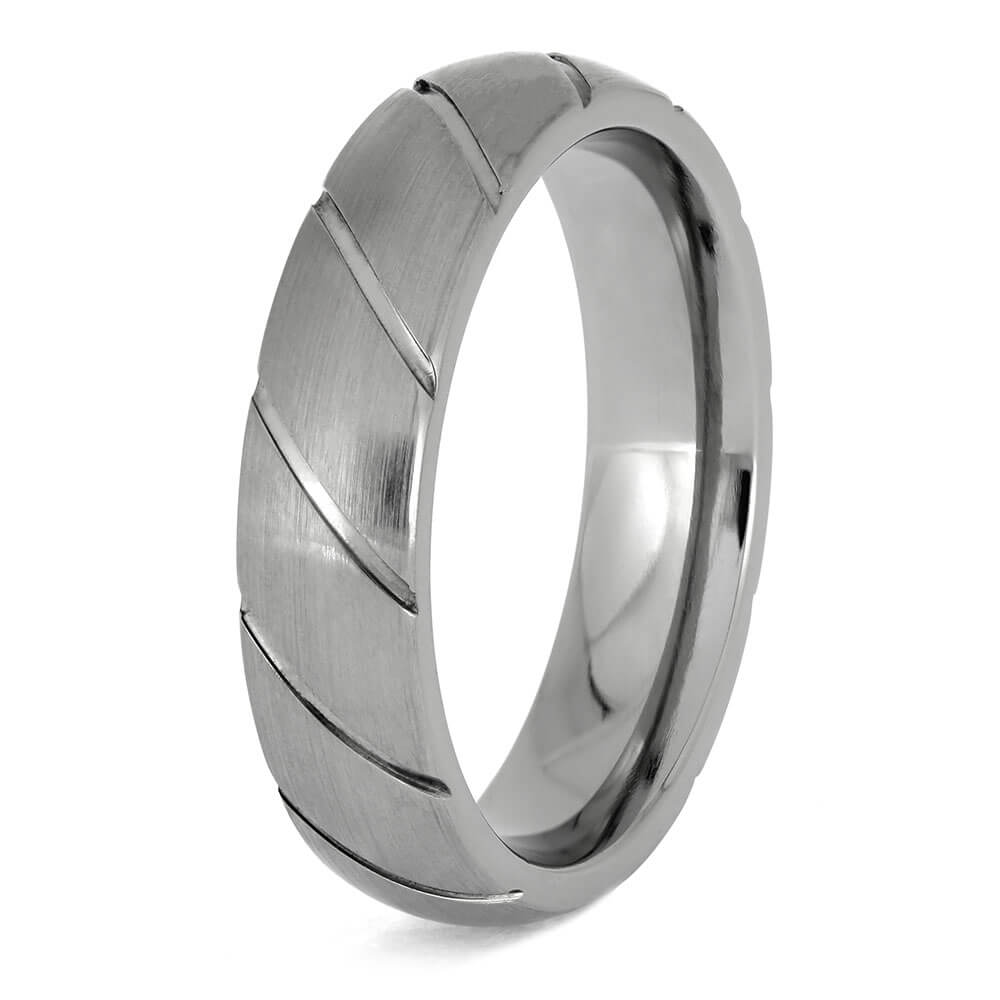 Materials in Custom Titanium Wedding Band with Spiral Grooved Profile