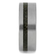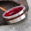 This fossilized dinosaur bone men's wedding band also features a bloodwood sleeve and has a manly, brushed titanium finish. Wood sleeves are coated with ring armor and are absolutely beautiful.