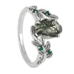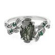 Materials in Nature Inspired Moss Agate Engagement Ring with Floral Leaf Design in White Gold