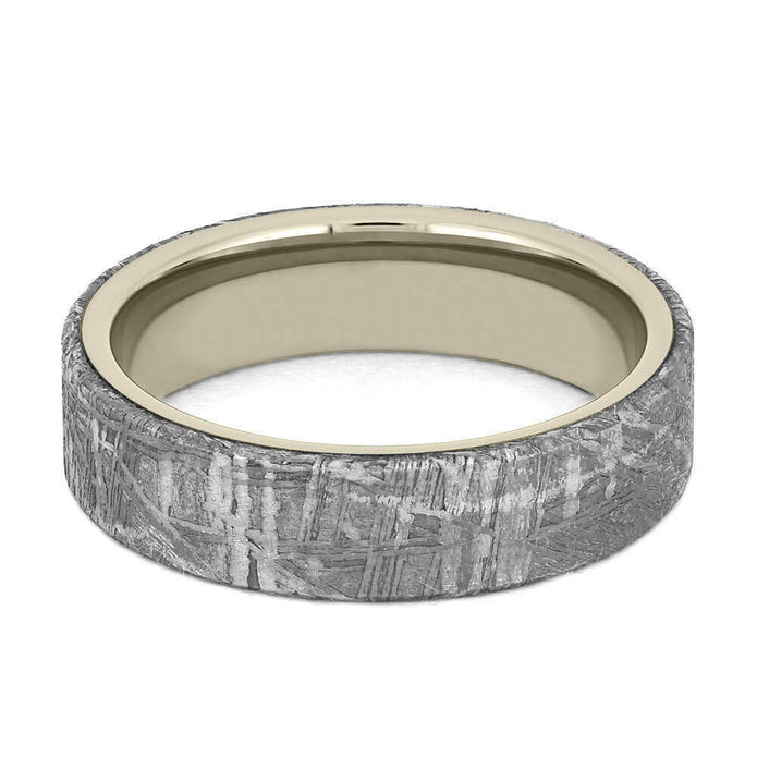 Solid Gold Gibeon Meteorite Overlay Wedding Band, 6mm Ring