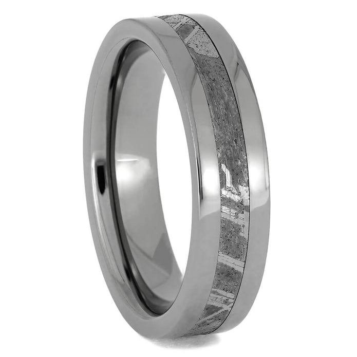 The chances of finding that perfect person to share your life with can sometimes seem astronomical. So, when you do find that special someone, celebrate the finding of love and commitment with this stellar meteorite wedding band! This genuine Gibeon meteorite ring is held in a sleek titanium band.