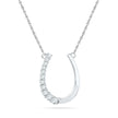 This gorgeous horseshoe pendant, which can be ordered in silver or gold, gently hangs from a rope chain necklace. Halfway lined with brilliant, round diamonds the pendant boasts beauty as well as good fortune. It is said that when a horseshoe hangs with its ends pointing up it works as a container, capturing any good luck that may be floating by.