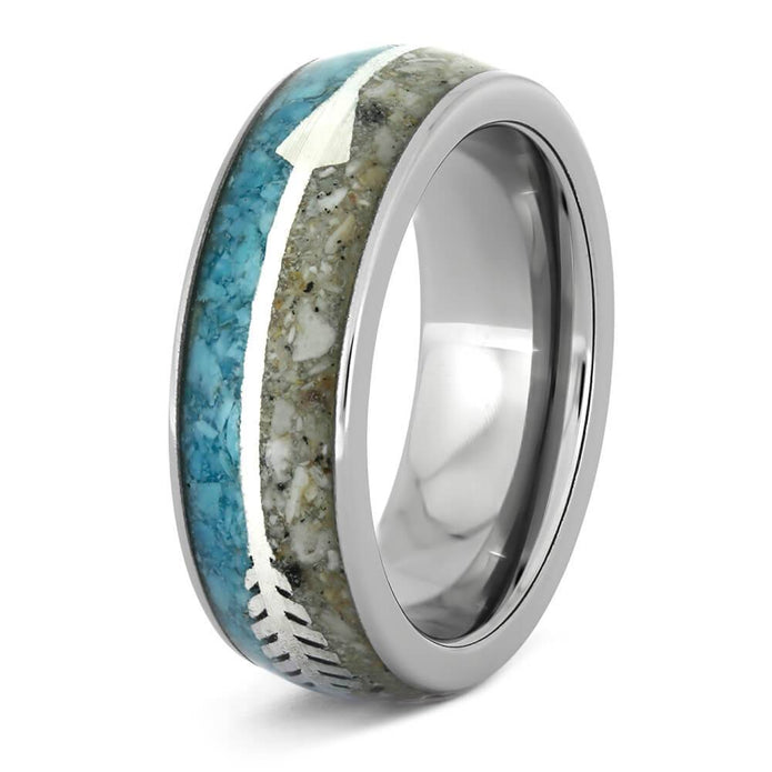Materials in Memorial Ring with Silver Arrow and Turquoise
