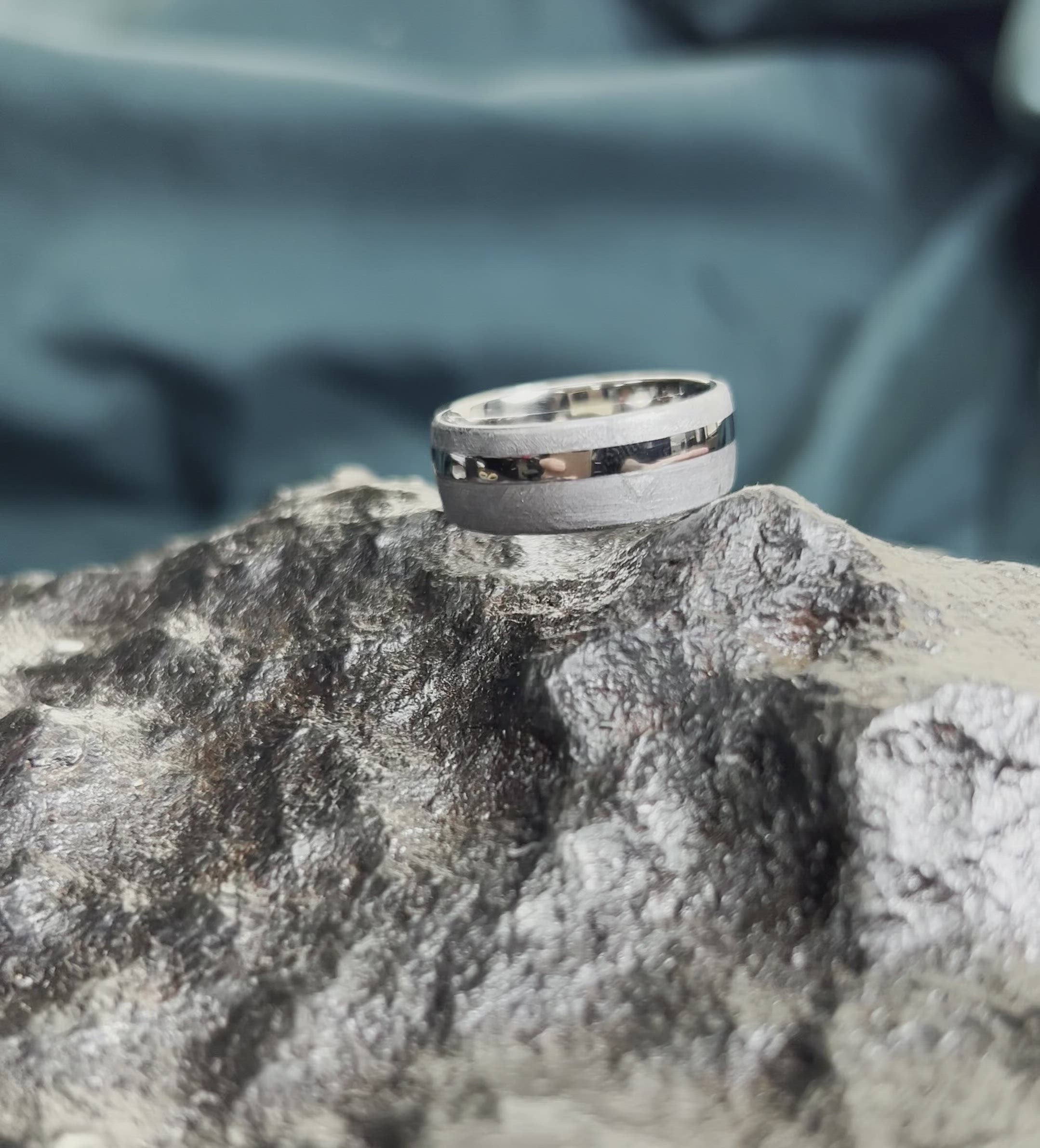 Men's Meteorite Wedding Band with Titanium Pinstripe
