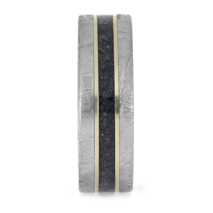 Materials in Men's White Gold and Mokume Gane Wedding Band with Meteorite
