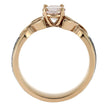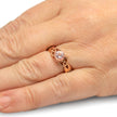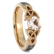 This stunning alternative engagement ring features a feminine, pink morganite and meteorite inlay on the underside of the ring shank. A stellar yet subtle addition. The featured gemstone is framed by two Celtic trinity knots that are a common symbol for love and devotion.