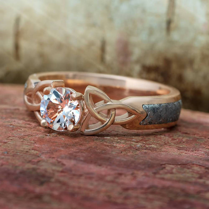 Meteorite Engagement Ring With Morganite and Trinity Knots