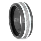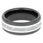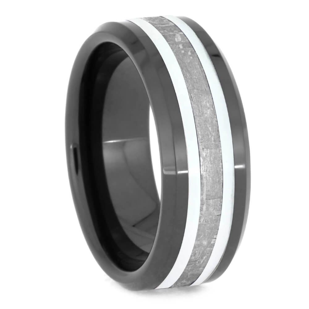 Handcrafted in a black and bold band, this meteorite ring is the perfect one for you. It’s equipped with white enamel on each side of the meteorite for a unique look.
